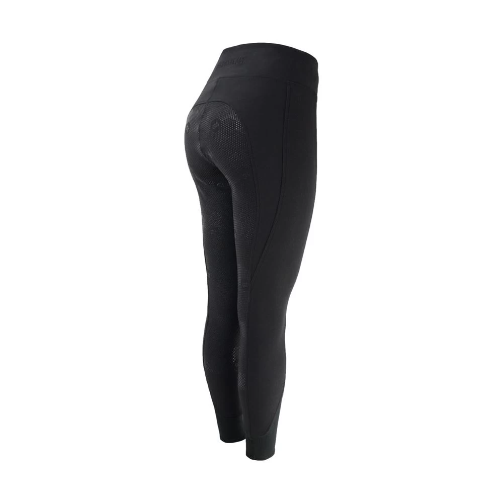 The unique silicone pattern full seat offers extra security for the rider and comfort is achieved when worn with long boots thanks to the no bulk stretch hem ankles.