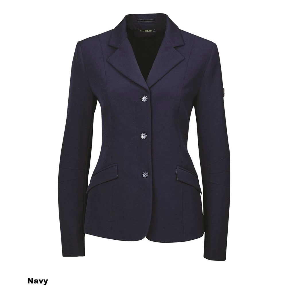 The Dublin Casey Ladies Tailored Show Jacket features stylish button detail on the front & cuffs, a hidden centre zip closure and a hanger and garment bag is included.