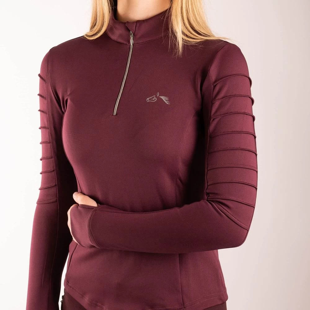 The Gallop Sophia Long Sleeve Base Layer comes designed with an elegant pleated step design along the arms, to match the Sophia Riding Tights.