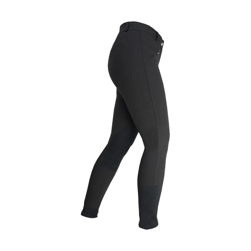 Reinforced Alos knee patches and a no-bulk stretch hem ankle combine with the comfortable, 4 way stretch material of the breech to create a secure fit.