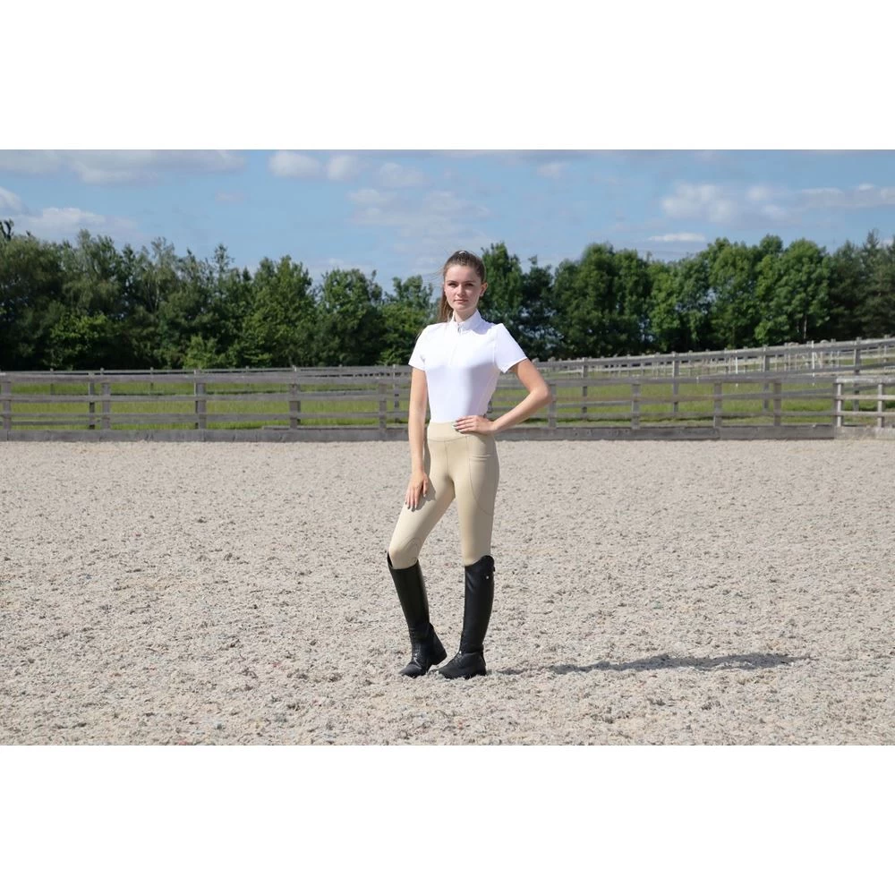 The Selah Competition Riding Tights feature a handy phone pocket, silicone knee for maximum grip in the saddle and lyrca sock at the bottom to ensure optimum comfort under long boots or socks.