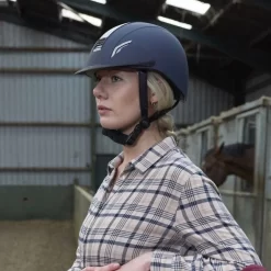 The John Whitaker VX2 Carbon Riding Hat is a lightweight riding hat which features a dial fit size adjustment, bounce back peak, a metal branded plaque and three front vents with silver glitter decals.