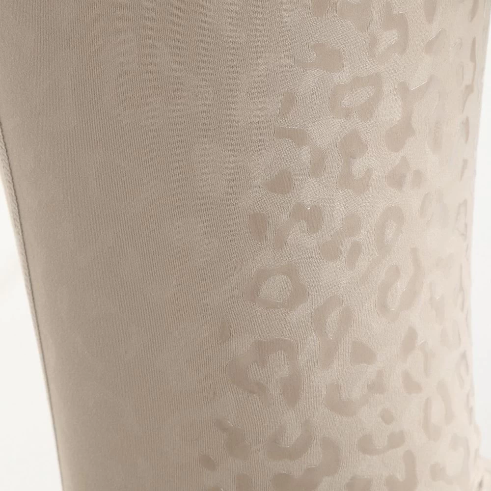 The Aubrion Non-Stop Riding Tights feature a subtle embossed leopard print, fluid second skin feel, silicone leg grips for in saddle security, deep supportive waistband, moisture management stretch fabric, thigh phone pocket, comfort seams and Aubrion prints.