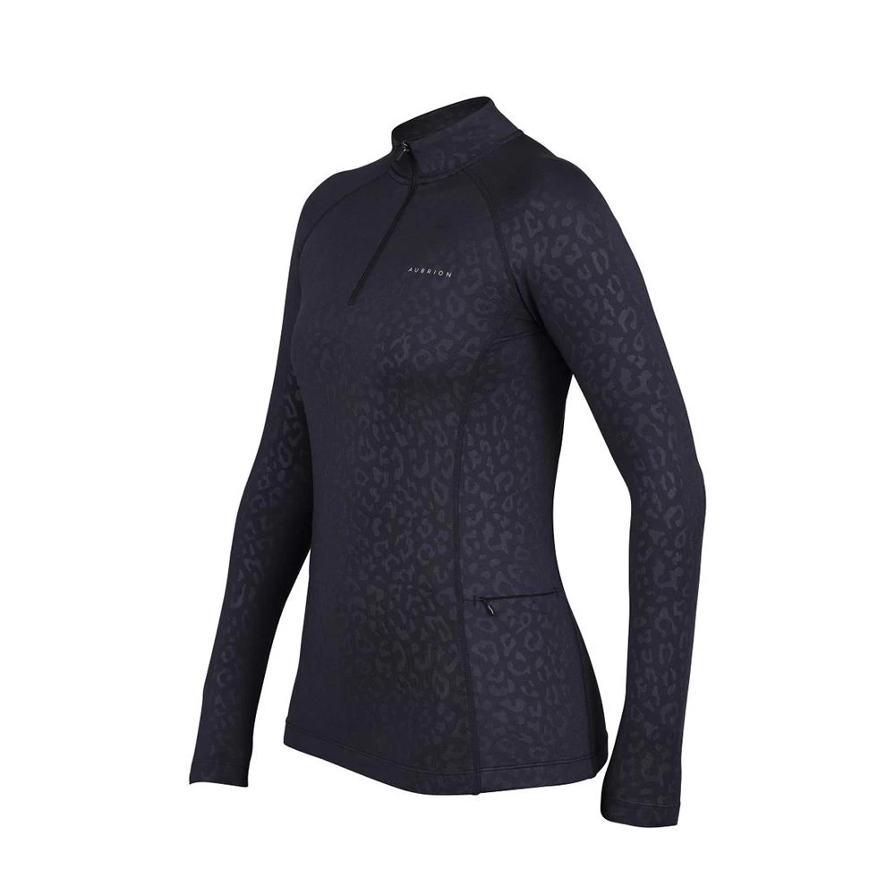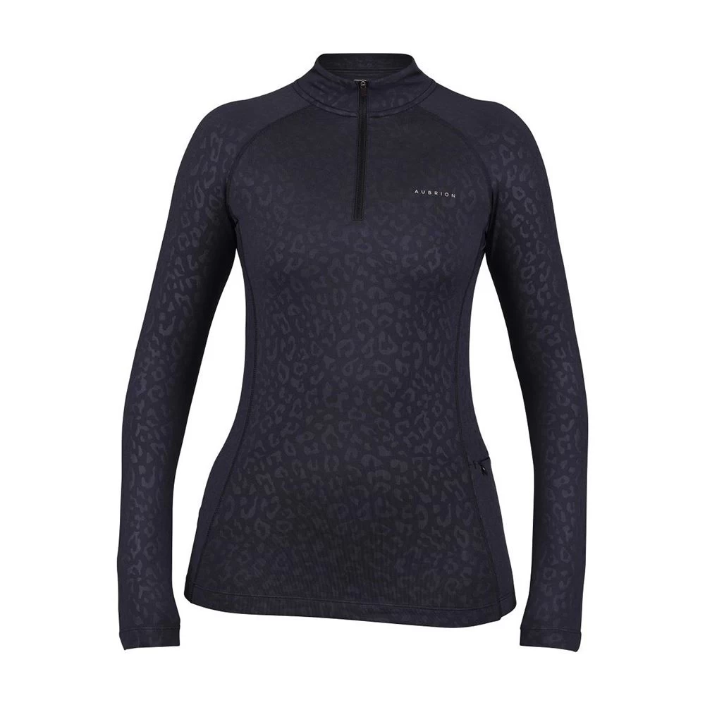 The Aubrion Revive Winter Baselayer offers a subtle embossed leopard print, soft brushed inner, zip neck for flexible ventilation, zip chin guard, side zip pocket for safe keeping of essentials, comfort seams and Aubrion prints.
