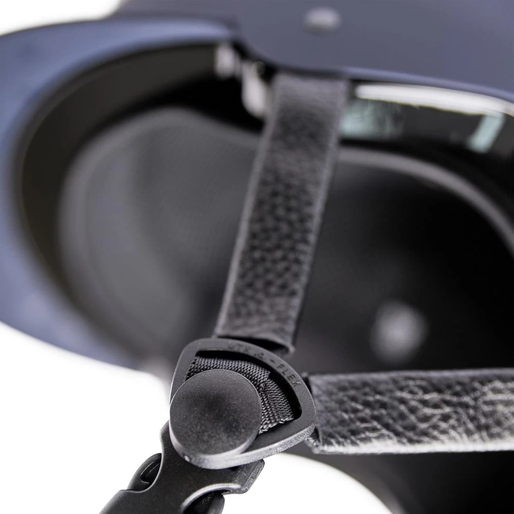 Expanded polystyrene inner shell with ventilation holes. Fully adjustable 4-point harness with leather look side panels. Quick release harness buckle. Removable anti-rub chin guard. Machine washable removable inner linings.