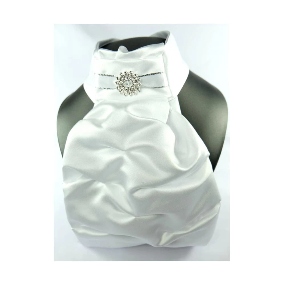 ShowQuest Regency V Stock is ready tied with a wide, ruched stock tie, featuring a three row circular buckle on metallic edged ribbon. A hook and loop fastening allows for a customised fit.